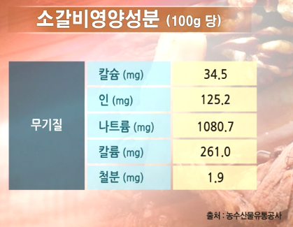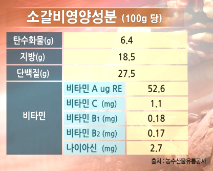 갈비에는 우리에게 중요한 영양소가 많이 들어있습니다. 비타민뿐만 아니라 무기질도 상당량 가지고 있습니다. 소갈비에는 아미노산 성분이 들어있는데 필수아미노산으로 성인 8개, 어린이가 2개 더 있는데 이 2개가 메티오닌과 라이신입니다. 이 메티오닌과 라이신의 똑 같은 특징이 유황이 들어가는 함황아미노산입니다. 그런데 소갈비에 이 메티오닌이 많고 라이신도 많아서 성장기 어린이에게 아주 좋습니다.