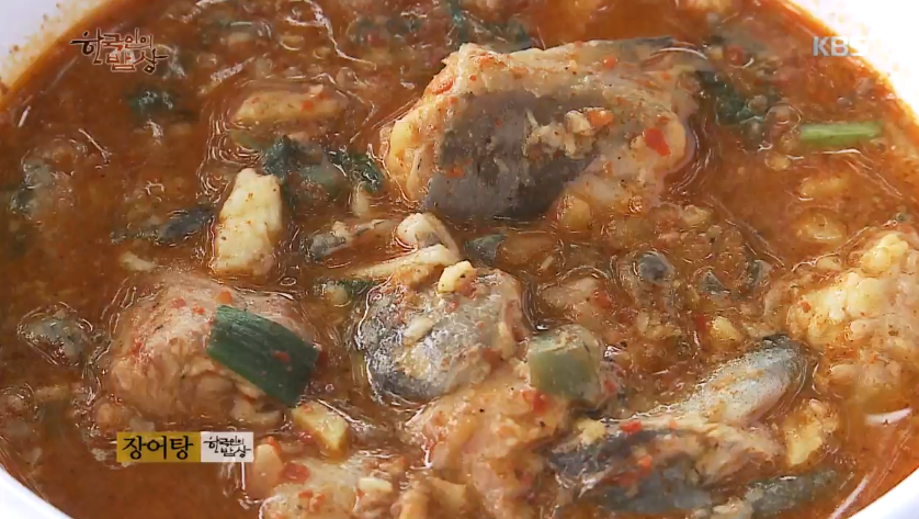 ‘장어탕’은 솥에 물을 붓고 손질한 장어를 칼집을 내서 통째로 넣고 된장을 풀어서 푹 끓입니다. 그리고 장어는 집게로 잡아 가위로 토막 내주고 고추장, 대파 등을 넣고 한소끔 끓입니다.