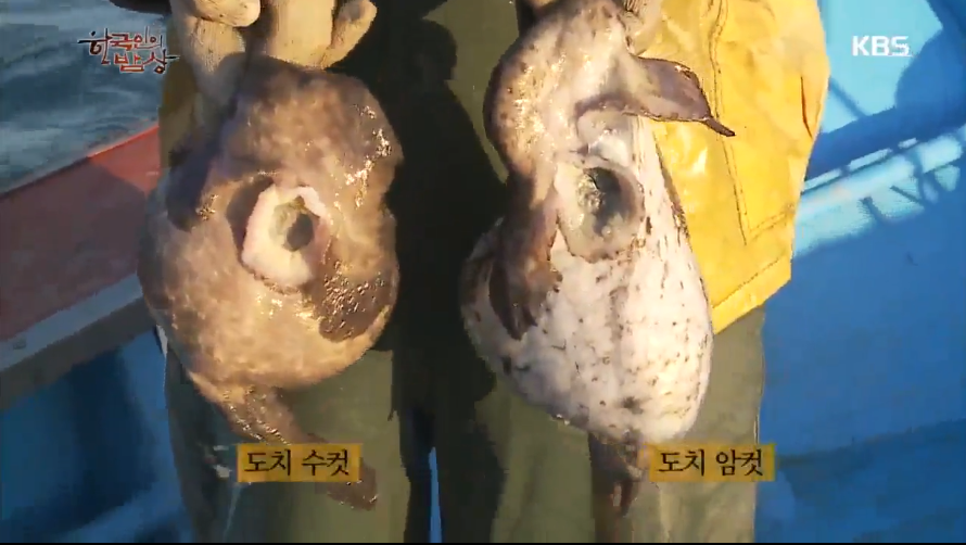 도치(=심퉁이)는 추운 겨울이 제철입니다. 구정 전 후가 가장 비쌀 때입니다. 수컷의 배는 처지지 않았는데 암컷은 배가 처져있습니다.