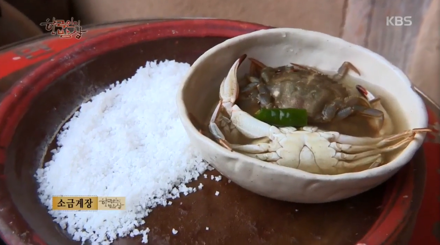 ‘소금게장’은 박하지를 손질해서 항아리에 넣고 소금을 물에 넣어 끓여서 식힌 뒤에 부어 주고 양파, 고추를 같이 넣고 돌로 눌러서 숙성합니다.