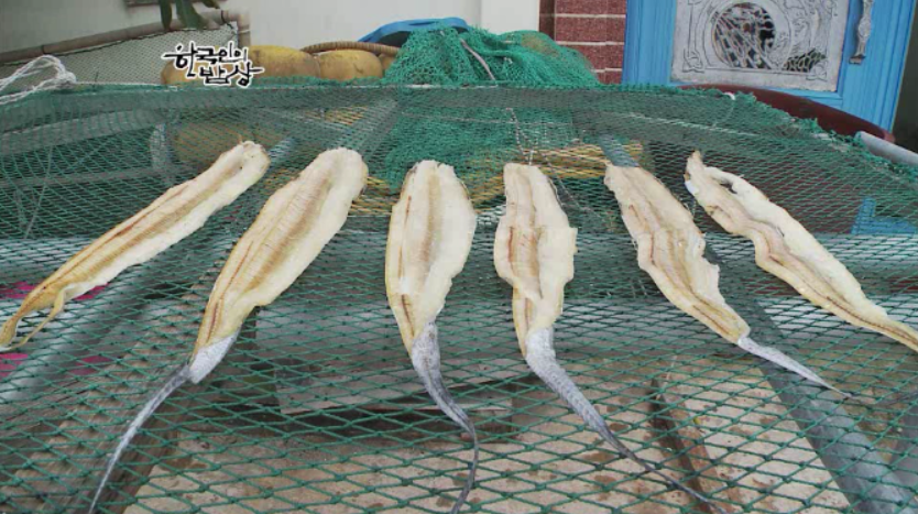 구이와 조림에 적합하지 않는 작은 갈치는 ‘건갈치’로 말립니다. 소금으로 짭짤하게 간을 해 놓아도 갈치는 몇 년이 지나도 맛이 그대로 변질이 안되고 갈치를 말려서 다시 쪄먹어도 갈치의 맛을 안 잃고 그대로 변함이 없다고 합니다. 보름간 해풍으로 잘 말립니다.