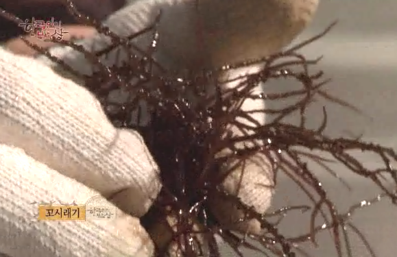 김농사를 짓고 꼬시래기를 땁니다. 꼬시래기에 방울방울 모가 생기면 늙은 것이라서 안먹습니다. 바다의 냉면이라고 불리는 꼬시래기는 칼슘, 식이섬유가 많습니다. 주로 무침을 해먹습니다.