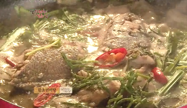 ‘민어매운탕’은 끊는 물에 무와 민어토막을 넣고 된장을 풀고 부추 넣고 함초장아찌 국물로 간을 맞추고 함초도 들어갑니다. 함초가 생선의 비린맛을 잡아준다고 합니다. 그리고 간은 살짝 심심하게 해야합니다. 함초에 짭잘한 맛이 있기 때문입니다.