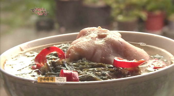 ‘갈파래국’은 된장을 푼 물에 끊이고 데친 돼지뼈를 넣고 푹 고아서 거기에 갈파래와 다진 마늘 고추를 넣고 끊입니다. 감기가 들었을 때 고춧가루를 많이 넣어 맵게 끊여서 먹으면 뚝 떨어진다고 합니다. 갈파래에는 요오드와 비타민이 많아 감기에 효과적입니다.