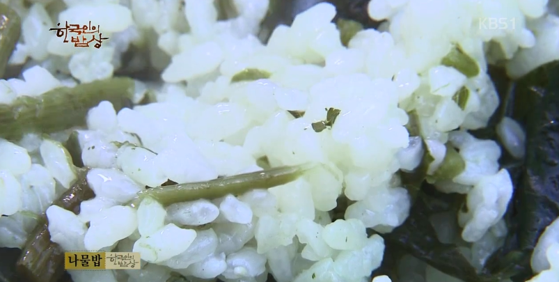 ‘나물밥’은 생나물을 말렸다가 물에 삶은 뒤에 쌀을 씻어 솥에 올리고 나물을 먹기 좋게 썰어 올린 뒤에 밥을 짓습니다.