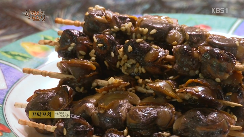 ‘꼬막꼬치’는 가마솥에 물을 끓이고 꼬막을 넣어 한 방향으로 저어서 끓이다가 살짝 입벌리면 바로 꺼내서 꼬막을 깝니다. 그리고 꼬지에 끼워서 팬에 기름을 두르고 튀기듯이 구워줍니다.