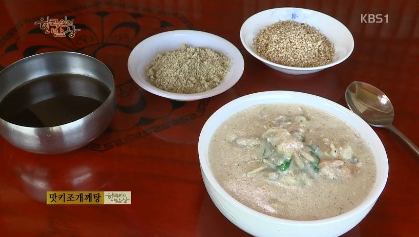‘맛키조개깨탕’은 새조개에 물을 부어 살짝 삶은 뒤에 국물을 덜고 새조개는 까서 넣고 키조개의관자를 썰어서 참기름을 두르고 볶아 넣어줍니다. 그리고 참깨, 물 넣고 간 것과 들깨가루를 넣고 끓여냅니다.