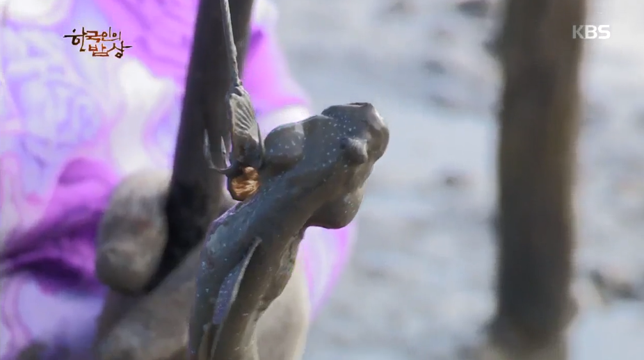 바다물이 물러나면 많은 생명들이 나오는데 가을 홀치기로 짱뚱어를 잡습니다. 짱뚱어는 민물에서도 10일을 살정도로 생명력이 강하다고 합니다.