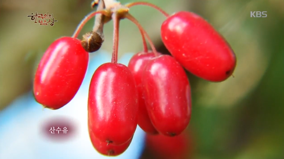 '산수유소고기수육'은 산수유를 말랑해질 때까지 그늘에서 말린 뒤에 씨를 뺍니다. 끓는 물에 천엽이랑 소고기를 넣고 깐 산수유를 넣고 푹 끓입니다. 건져먹기 좋게 썰고 진한 육수도 마십니다.