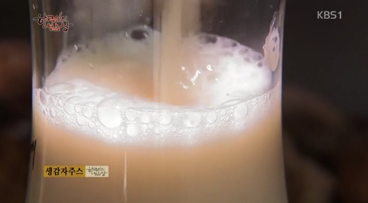 '생감자주스'는 생감자를 갈아서 요구르트와 함께 섞어서 마십니다.