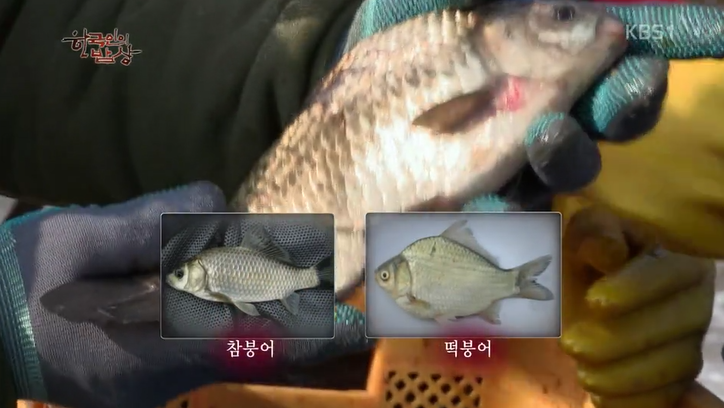 얼음이 얼기 전에 쳐놓은 그물을 걷기 위해 얼음을 부수고 떠내려 보낸 뒤에 그물을 올립니다. 요즘은 모래무지, 참마자, 피라미, 붕어 등 비늘 달린 어종이 주로 나옵니다. 참붕어는 우리 토종 떡붕어는 외래종입니다.