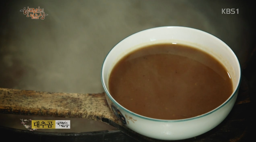‘대추곰’은 솥에 말린 대추를 푹 삶아서 물과 함께 체에 곱게 걸러서 다시 솥에 넣고 잘 씻은 차조쌀을 넣고 은근히 다립니다.
