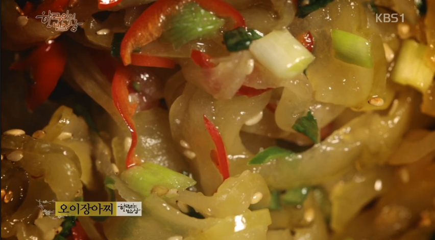 ‘오이장아찌’는 술지게미에 오이에 묻혀 1년 삭힙니다. 먹기 전에 씻어서 송송 썰어 청양고추, 깨소금, 들기름 등을 넣고 무쳐줍니다.