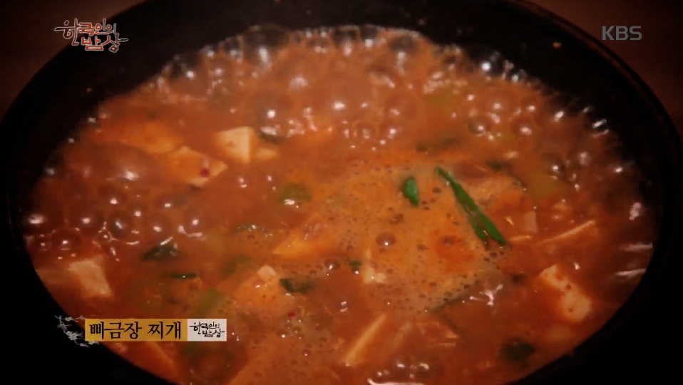‘빠금장찌개’는 끓는 물에 빠금장을 풀어 넣고 풋마늘, 달래 등을 송송 썰어 넣고 두부를 넣어 바글바글 끓입니다.