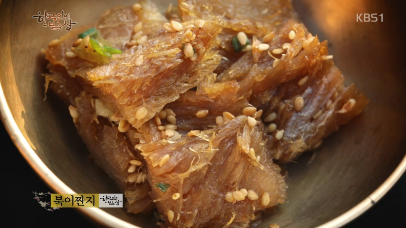 ‘북어짠지’는 북어 껍질을 벗기고 손질해서 토막내서 소금물에 담그고 꿀물에 다시 한 번 재운 뒤에 항아리에 켜켜히 쌓은 뒤에 간장을 부어 삭힙니다.