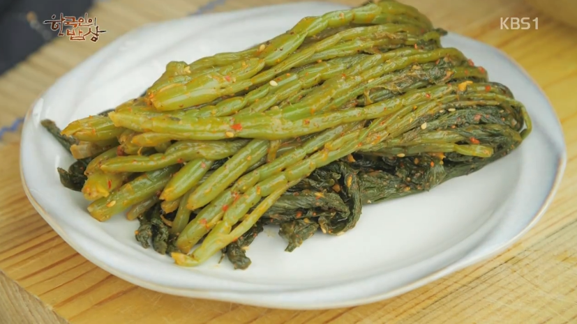 ‘갓김치’는 김장철에 토종갓에 소금을 섞어서 항아리에 저장해두었다가 먹을 때 씻어서 사용합니다.