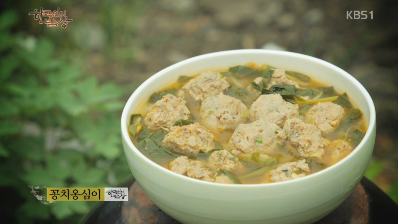 ‘꽁치옹심이’는 꽁치를 머리와 내장, 꼬리 등을 발라내고 뼈채 잘게 다진 뒤에 다진마늘, 생강가루, 다진파, 밀가루 등을 넣고 잘 무칩니다. 냄비에 부추, 깻잎에 다진마늘, 고춧가루, 생강가루 등을 넣어 양념을 해서 끓는 물에 넣고 꽁치살을 둥글게 빚어 넣어 끓입니다.