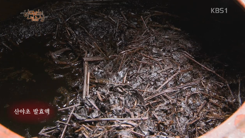 ‘산야초발효액’은 산약초를 크기별로 썰어서 설탕은 재료와 1:0.5로 넣고 소금(설탕량을 줄이고 오래 보존하기위해)을 살짝 넣어서 숙성합니다. 그리고 숙성한 산약초액에 새로 뜯은 산야초를 섞어줍니다. 이렇 식으로 매년 섞어 3년이상 숙성합니다.(묵을수록 단맛이 살아짐.)
