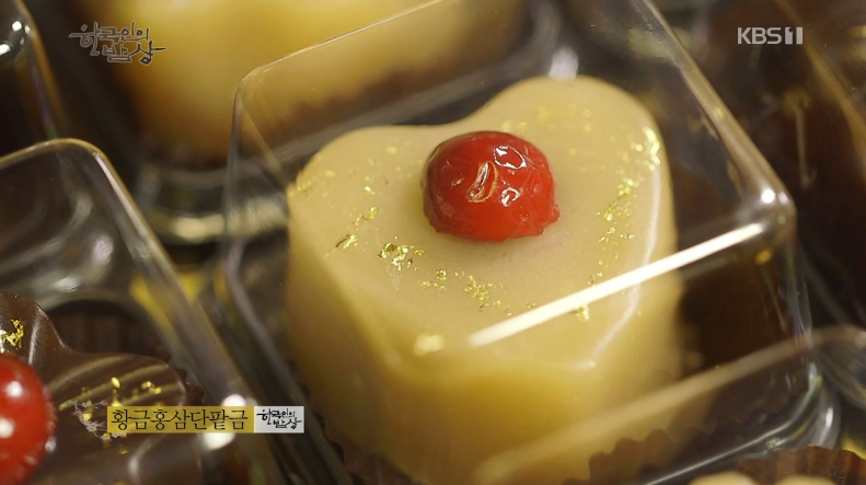 ‘황금홍삼단팥금’은 홍삼정을 넣어서 단팥금에 식용 황금고명을 올립니다.