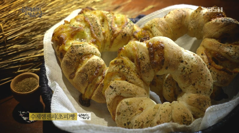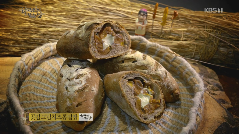 ‘곶감크리치즈통밀빵’은 빵반죽에 곶감을 깔고 크림치즈를 올리고 말아서 굽습니다.