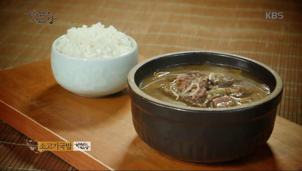 ‘소고기국밥’은 무를 연필깍듯 깍아 냄비에 깔고 볶다가 고기를 넣고 볶아줍니다. 물을 넣고 토란대, 콩나물, 파, 양파 등을 넣고 고춧가루, 간장 등을 넣어 끓입니다.