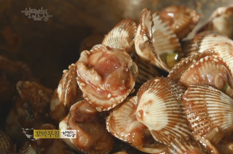 ‘꼬막무침’은 끓는 물에 씻은 꼬막을 넣고 한 쪽으로 저으면서 삶은 뒤에 한 쪽 껍데기를 떼고 간장양념에 잘 무쳐줍니다.