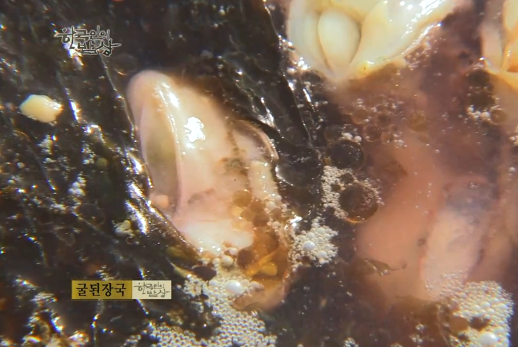 ‘굴된장국’은 끓는 물에 된장을 물에 풀어 넣고 굴을 넣어줍니다. 그리고 생김과 참기름을 넣고 한소끔 끓여서 마무리를 합니다.