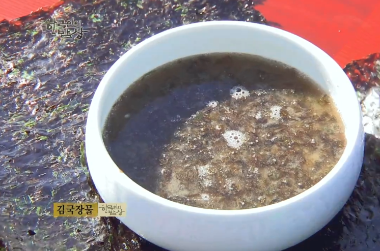 ‘김물장물’은 솥에 넣었던 쌀뜨물에 구운 김을 부수어서 넣고 집간장으로 간을 합니다.