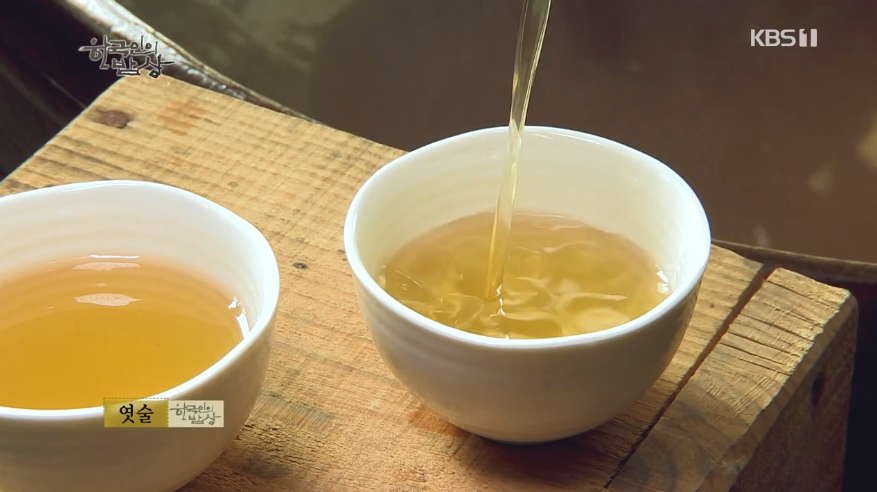 ‘엿술(옥수수술)’은 말린 옥수수를 가루를 낸 뒤에 쌀과 섞어 물에 불려서 맷돌에 갈은 뒤에 푹 끓입니다. 그리고 엿기름 물을 넣고 저으면서 8시간 정도 끓입니다(애기죽). 채에 걸러서 항아리에 넣고 누룩을 깨서 면보에 넣어서 항아리에 같이 넣어 발효시킵니다.