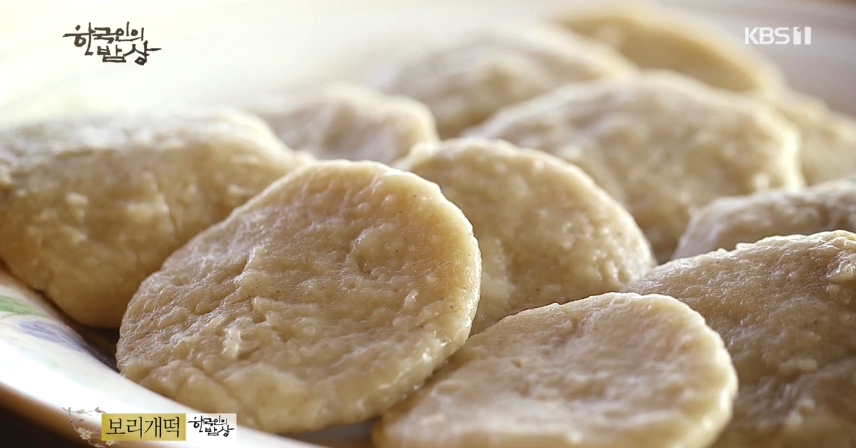‘보리개떡’은 보리가루를 반죽해서 작게 둥글납작하게 빚어서 끓는 물에 넣고 한 번 삶은 뒤에 들기름, 소금 등을 넣고 무쳐줍니다.