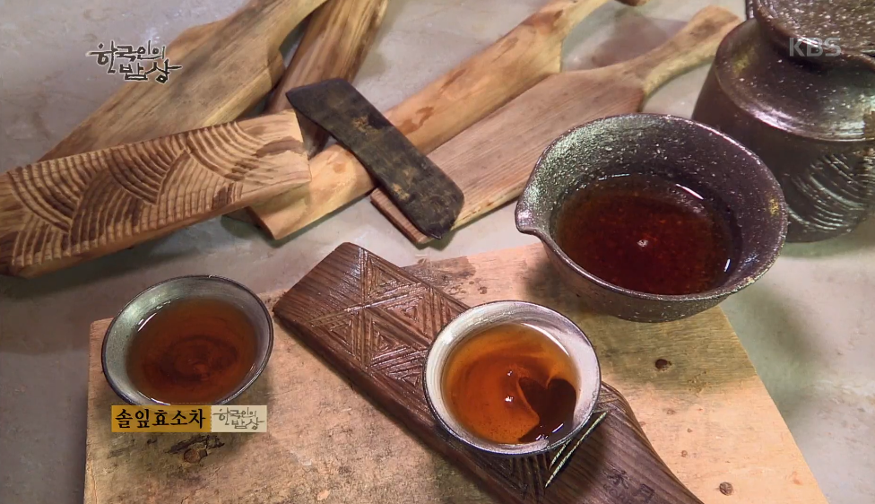 ‘솔잎효소차’는 솔잎을 잘라서 푸레도기에 넣고 꿀을 넣어서 숙성을 시킵니다. 그리고 따뜻한 물에 타줍니다.