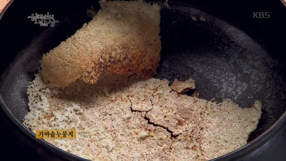 ‘가마솥누룽지’는 밥을 다 퍼내고 밑바닥에 있는 것을 솥의 열기로 구워줍니다.