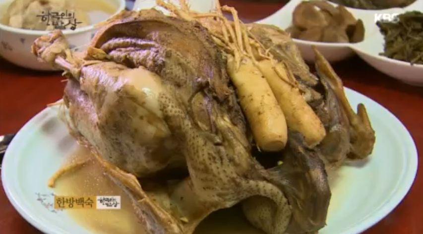 ‘한방백숙’은 약나무, 조리대, 헛개나무, 멍가(토복령), 상황버섯, 영지, 대추 등을 넣고 물에 넣고 푹 끓입니다. 토종닭 속에 찹쌀, 녹두, 은행, 6년근 인삼 등을 넣고 묶어 준 뒤 잘 거른 약초물에 넣고 삶아줍니다.