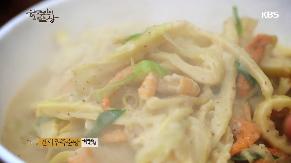 ‘건새우죽순탕’은 죽순을 삶아 길게 찢어 참기름을 넣고 볶다가 찹쌀가루, 들깨가루를 넣고 볶다가 건새우를 넣고 어간장으로 간을 해서 되직하게 볶아냅니다.