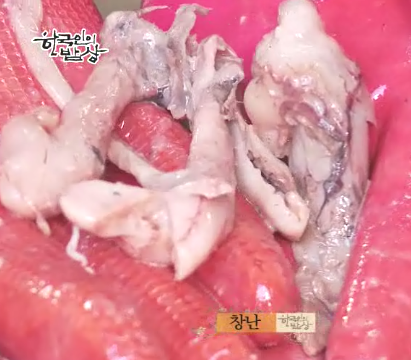 ‘창난젓’은 명태창자에 소금으로 절이고 물엿, 고춧가루, 다진마늘을 넣고 젓갈을 담습니다.