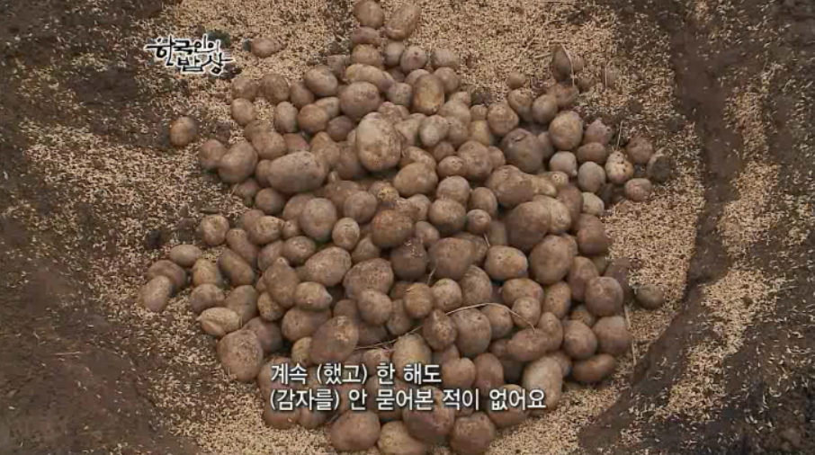 폭설이 예고된터라 마음이 급합니다. 추위를 나기위해 나무를 하고 무청을 널고 땅에 구덩이를 파고 감자를 묻습니다. 감자를 땅 속에 묻어서 3~5도 사이에 저장을 해놓으면 물컹물컹하지않고 땅에서 캤을 때랑 비슷합니다. 그냥 놔두면 물컹해진다고 합니다. 내년에 심을 씨감자도 짚으로 덮은 뒤에 흙을 덮고 그위에 비닐을 덮어 놓습니다. 산과 들에서 난 나물, 채소들도 말려서 준비합니다. 이렇게 겨울을 준비합니다.