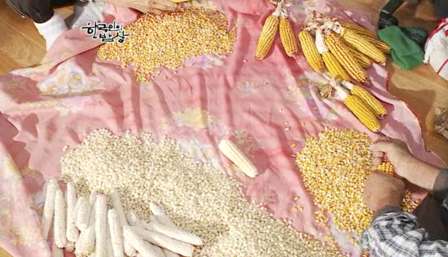 옥수수를 말려서 알알이 땝니다. 그래서 항아리에 저장을 합니다. 그리고 겨울에 쌀이 귀하던 시절 이것으로 밥을 했는데 ‘강냉이밥(옥수수밥)’이라고 합니다. 솥에 물을 붙고 말린 옥수수를 넣고 밥하듯이 하면 됩니다. 강냉이는 강남에서 유래된 말로 옥수수가 중국에서 들어왔기 때문입니다.
