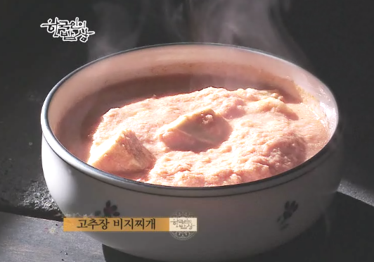 ‘고추장 비지찌개’는 끊는 물에 고추장을 풀고 콩 갈은 것과 비지 짠 것을 듬뿍 넣습니다. 사람의 취향에 따리 김치도 송송 썰어 넣는다고 합니다.