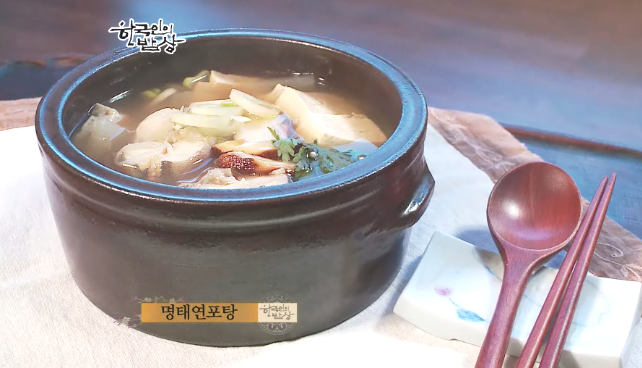 ‘연포탕’은 들말린 명태를 손질하여 국물을 내고 무, 두부를 먹기 좋게 썰어 넣고끓여서 간장으로 간을 맞춥니다.