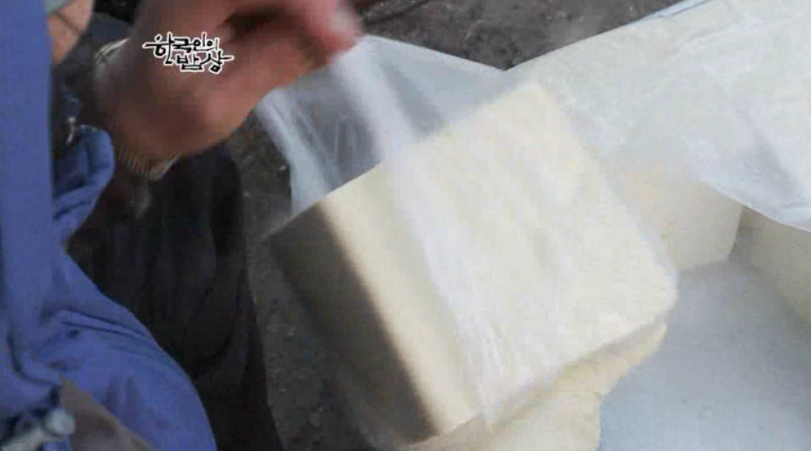 메주를 만드는 날 부엌에서는 새참을 준비하는데 꼭 두부가 나옵니다. 산간 지역에 보양식은 콩밖에 없어서 그랬다고 합니다.