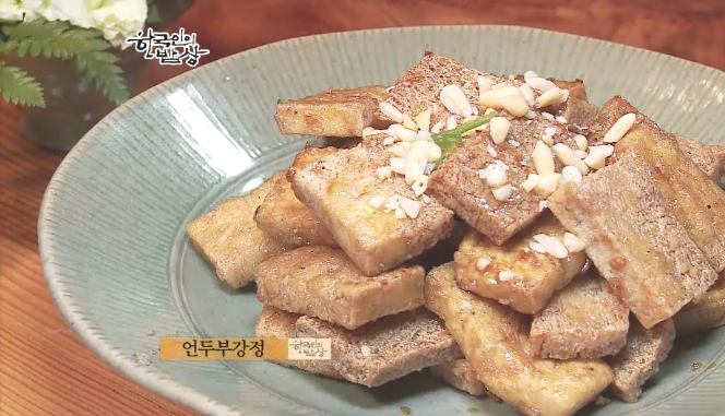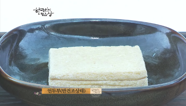 옛날에는 두부를 주방에 두면 얼어버렸습니다. 그래서 얼어버린 두부를 어떻게 할 수 없어 해먹던 요리를 언두부 요리라고 하고 보관을 하기 위해서 언두부를 건조를 시켰습니다. 건조를 시켜서 저장을 해놓고 요리를 해서 선조들이 드셨던 그런 요리입니다. 영하에 온도에 두부를 두면 수분이 빠지면서 크기가 줄어 들고 구멍도 숭숭 납니다(수분이 빠지면서 지방이 빠지고 단백질은 증가해서 소화흡수가 잘된다고 함). 이런 언두부는 겨울 내내 두고 먹을 수 있습니다.