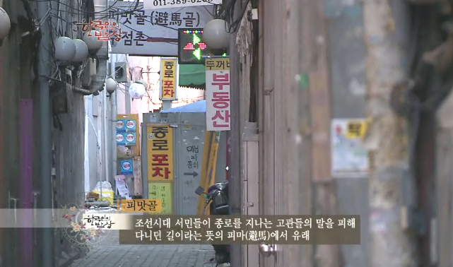말을 피해 다녔다는 말에서 유래된 ‘피맛골’입니다.