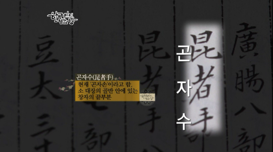 『진연의궤(조선시대 궁중의 각종 잔치에 관한 의식을 적은 책)』에는 곰탕을 끊일 때 곤자수(현재 곤자손)라는 것을 넣는다고 나와 있는데 소 대장의골반 안에 있는 창자의 끝부분을 말합니다.