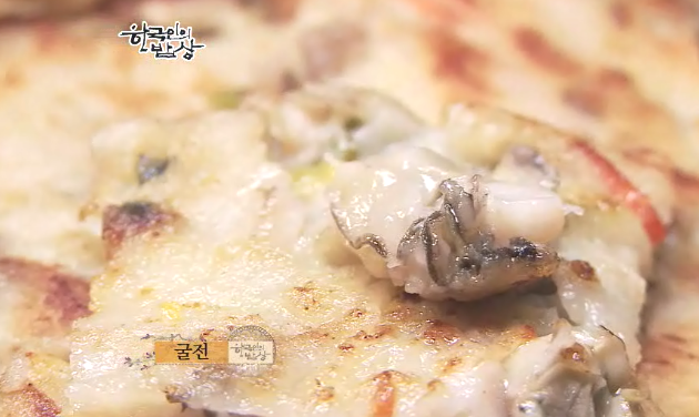 ‘굴전’은 굴을 크지막하게 썰어 각종 야채와 부침가루를 넣고 비벼 지져냅니다.