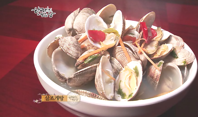 ‘살조개탕’은 금방잡은 살조개를 잘 해감해서 끊는 물에 넣고 고추와 파를 넣고 끊여줍니다. 철에는 물만 붓고 끊여도 깊은 맛이 난다고 합니다.