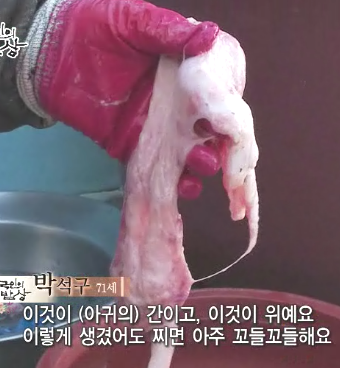 예전에는 아귀가 엄청커서 큰 칼로 손질을 했습니다. 30년 째 아귀를 팔고 있는 아귀달인이 된 할머니네는 아들셋과 며느리 셋까지 아귀 장사를 합니다.
