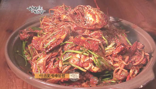 ‘아귀꽃게해물찜찜’은 꽃게를 손질하여 다진마늘과 볶습니다. 꽃게를 볶으면 이 자체에서 나오는 성분 때문에 국물이 뽀얗습니다. 그리고 고춧가루를 넣고 볶다가 대하, 전복 등 다양한 해물을 넣고 콩나물을 넣고 볶아줍니다. 마지막에 미나리넣고 볶으면 됩니다.