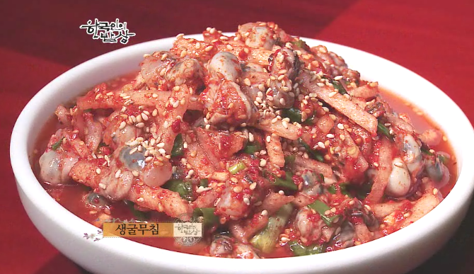 ‘생굴무침’은 무채와 함께 각종 양념과 무쳐 냅니다.