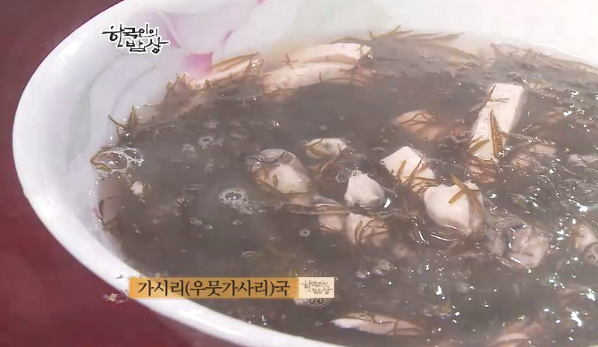 ‘가시리국’은 가시리를 비벼서 씻으면서 다듬고 끊는 물에 굴을 넣고 가시리를 넣은 뒤에 끊입니다.