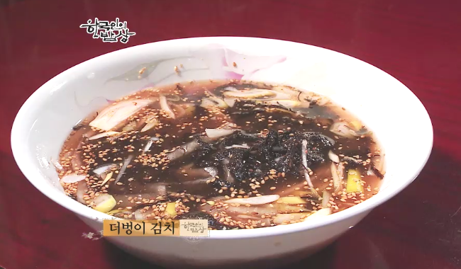 ‘더벙이 김치’는 더벙이(숯이 많은 더벙머리를 닮아서.)를 이물질을 제거하고 다듬어 씻습니다. 그리고 끊는 물에 데칩니다. 그리고 동치미무를 얅게 저민 다음에 동치미 국물과 김장김치 국물을 섞은 뒤에 더벙이를 섞고 참깨, 양파, 파를 넣고 섞어서 차게해서 먹습니다. (바로 먹는 김치라 조금씩 그 때 그 때 만들어 먹습니다.).